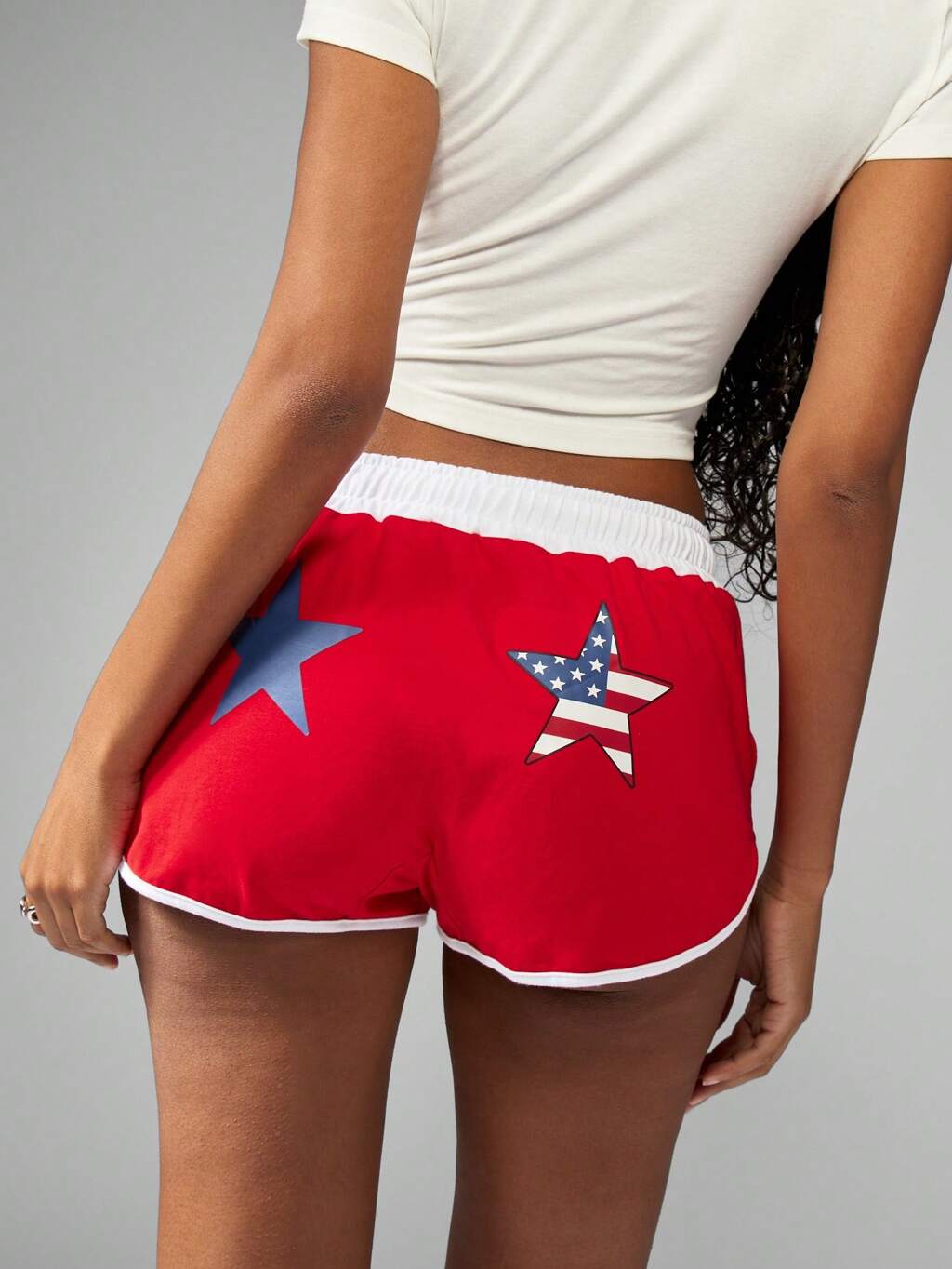 MISSGUIDED Pantalones cortos transpirables estilo corredor retro con estampado de estrellas de EE. UU. y dobladillo de delfín
