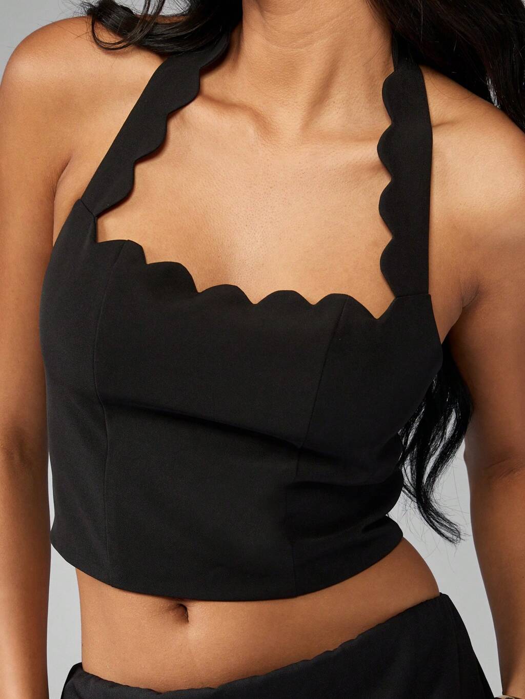 MISSGUIDED Top corto con cuello halter festoneado y detalle de lazo