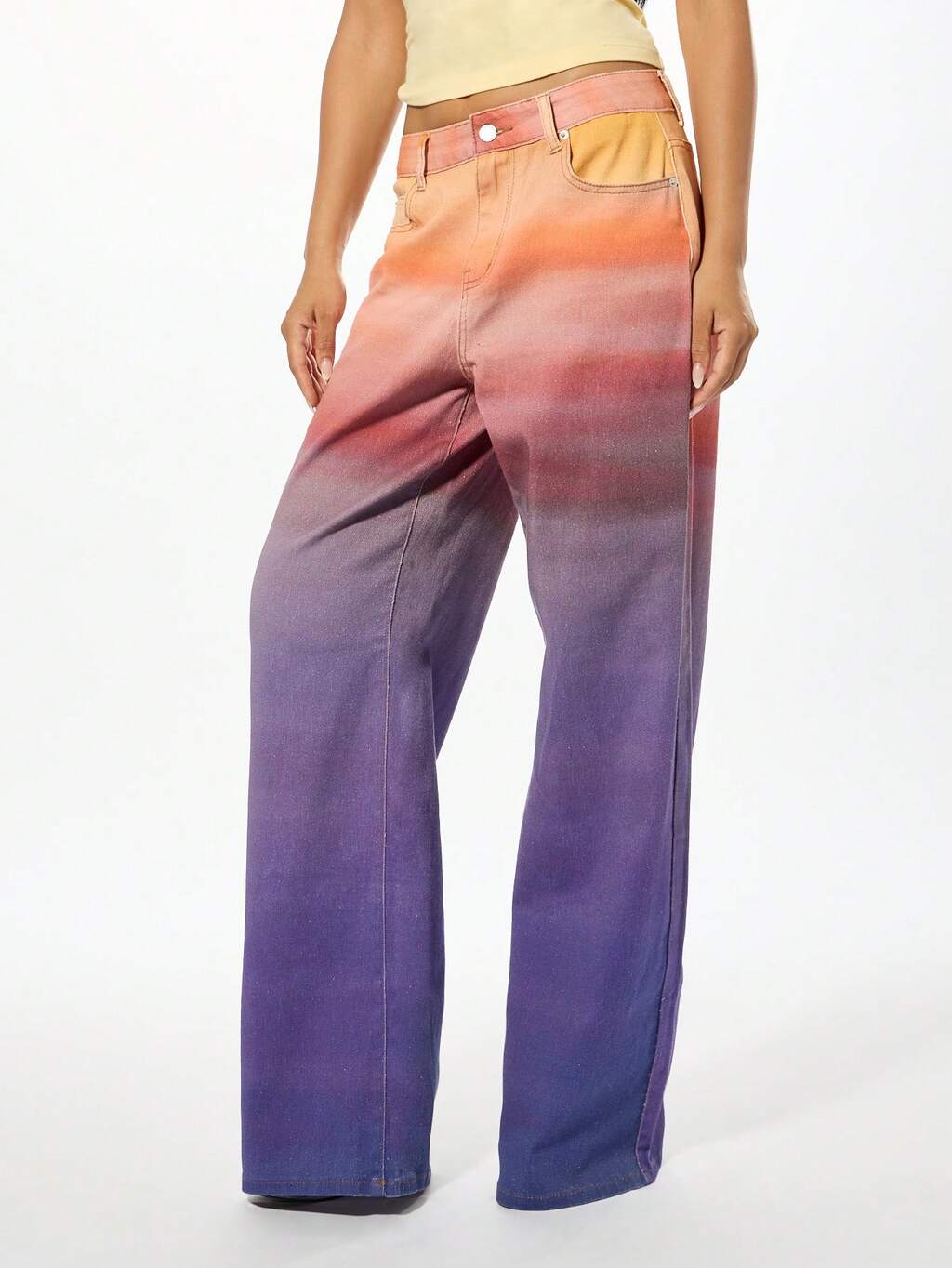SUMWON WOMEN Jeans de pierna ancha de algodón con degradado ombre de cintura alta para festival, uso casual, streetwear, primavera, verano, estética occidental, y moda declarativa Y2K