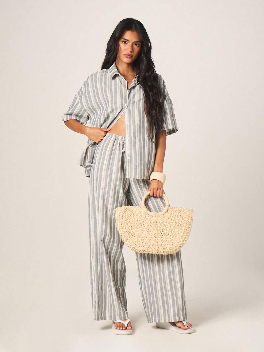 MISSGUIDED Conjunto de camisa y pantalón oversize a rayas