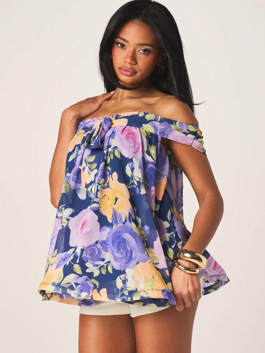 MISSGUIDED Blusa floral con hombros descubiertos y detalle de lazo