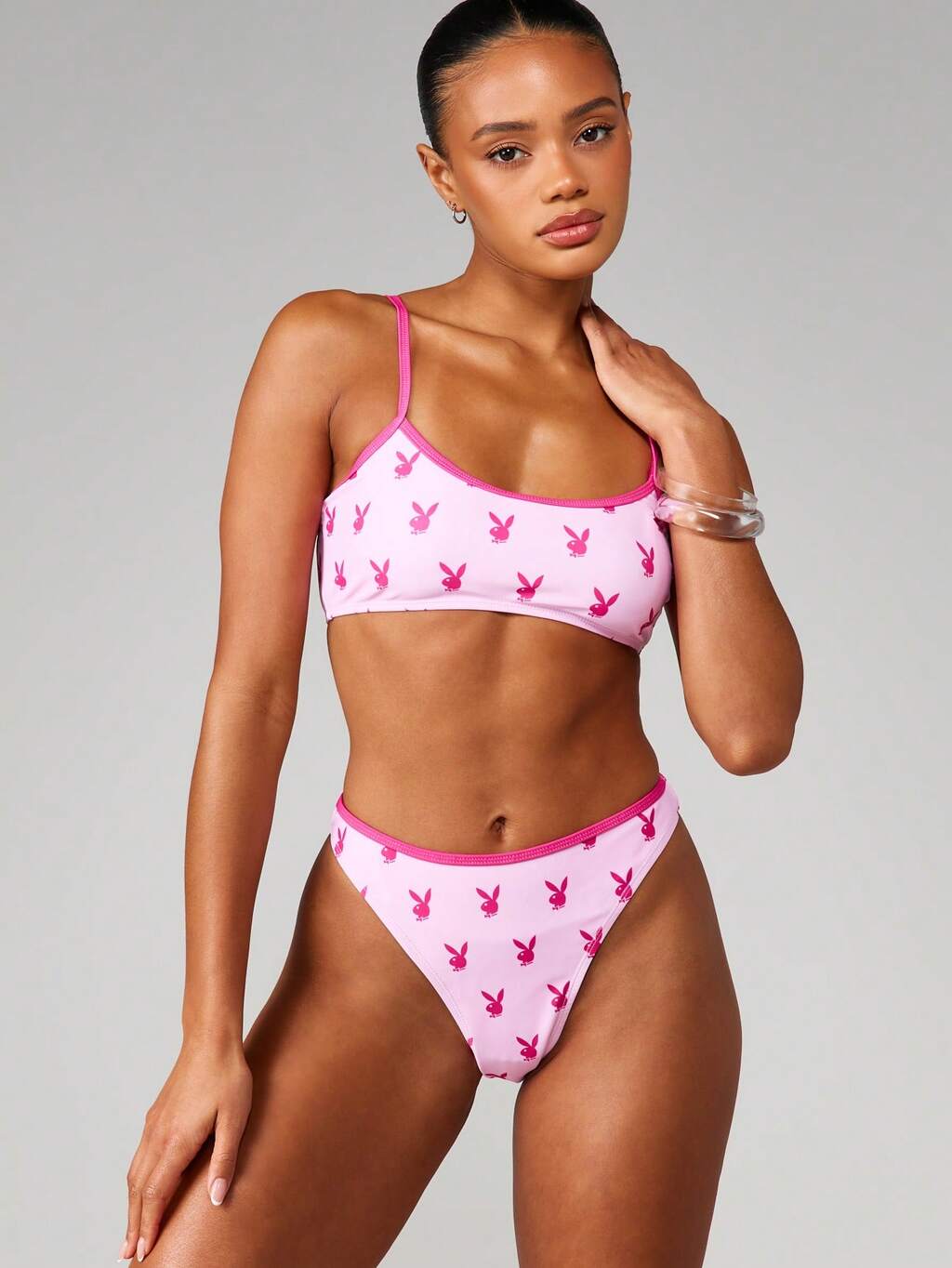Missguided x Playboy Conjunto de bikini con estampado de conejito y top triangular