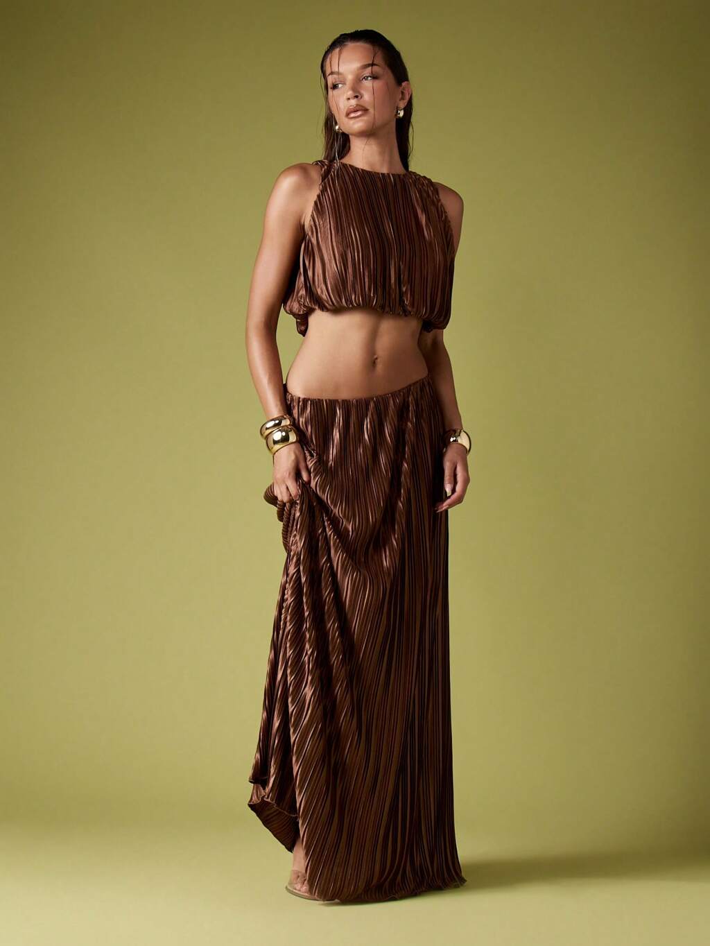 MISSGUIDED Top corto plisado con falda larga