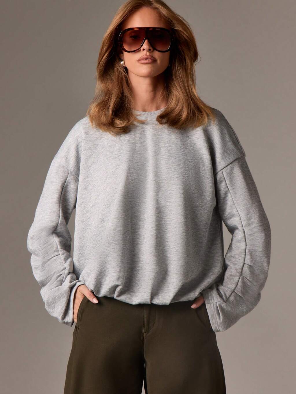 AiiRZ Sudadera con dobladillo abombado, manga larga oversize, casual, cómoda, cuello redondo, moda de invierno y otoño, ropa de calle