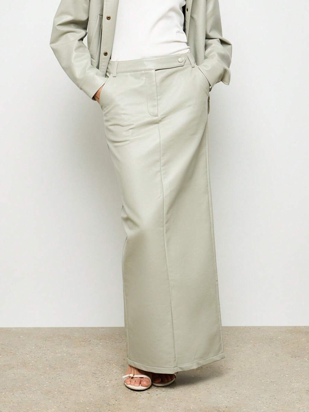 AiiRZ Falda de columna maximalista de piel sintética con diseño de abertura trasera, elegante para oficina y uso profesional, de moda para otoño e invierno