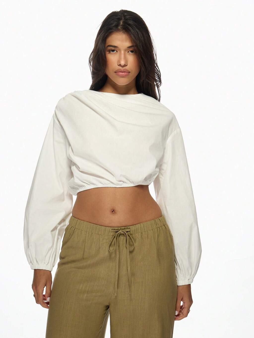 MISSGUIDED Top de popelina drapeado asimétrico con mangas globo