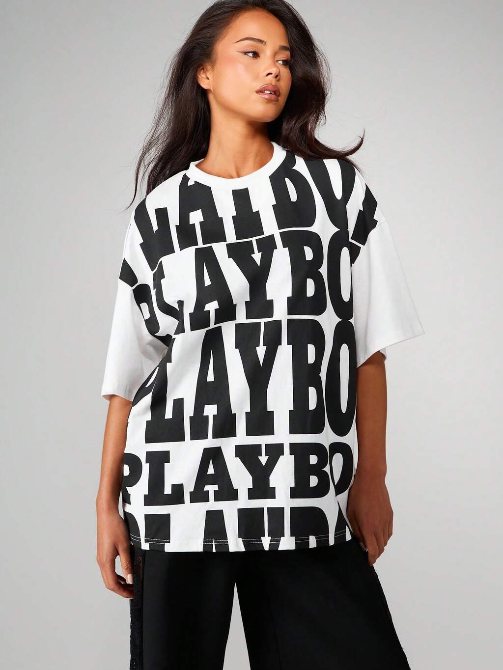Missguided x Playboy Camiseta gráfica extragrande con tipografía llamativa