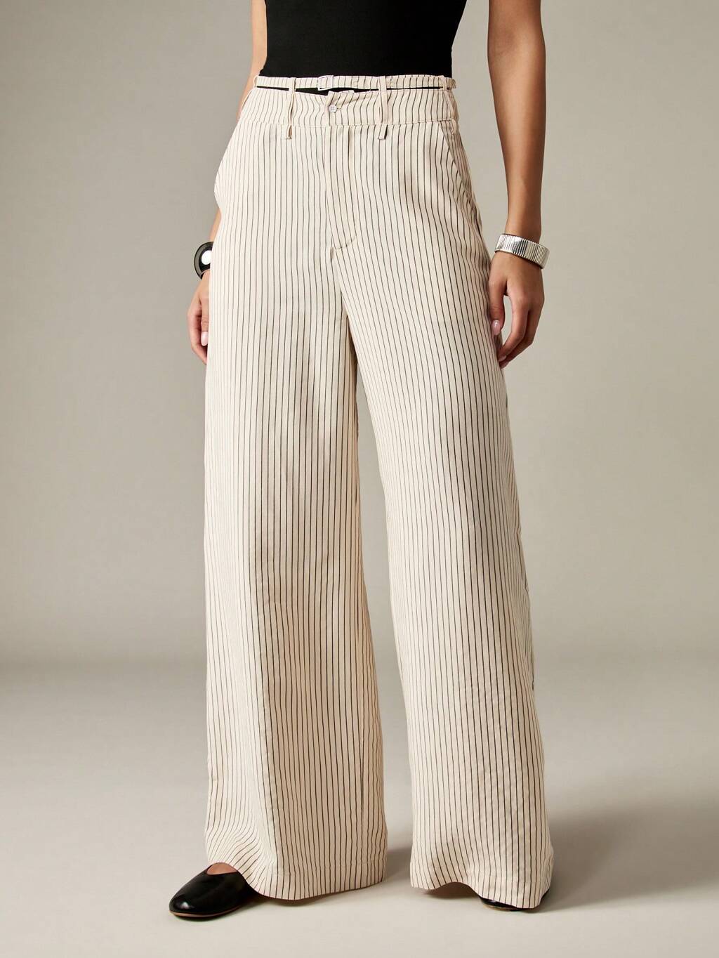 MISSGUIDED Pantalones palazzo de pierna ancha con raya diplomática y cinturón