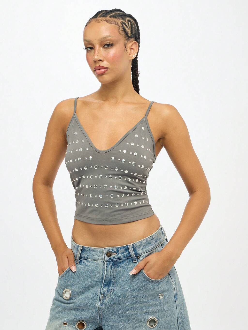 MISSGUIDED Débardeur brodé de perles avec ourlet à bulles