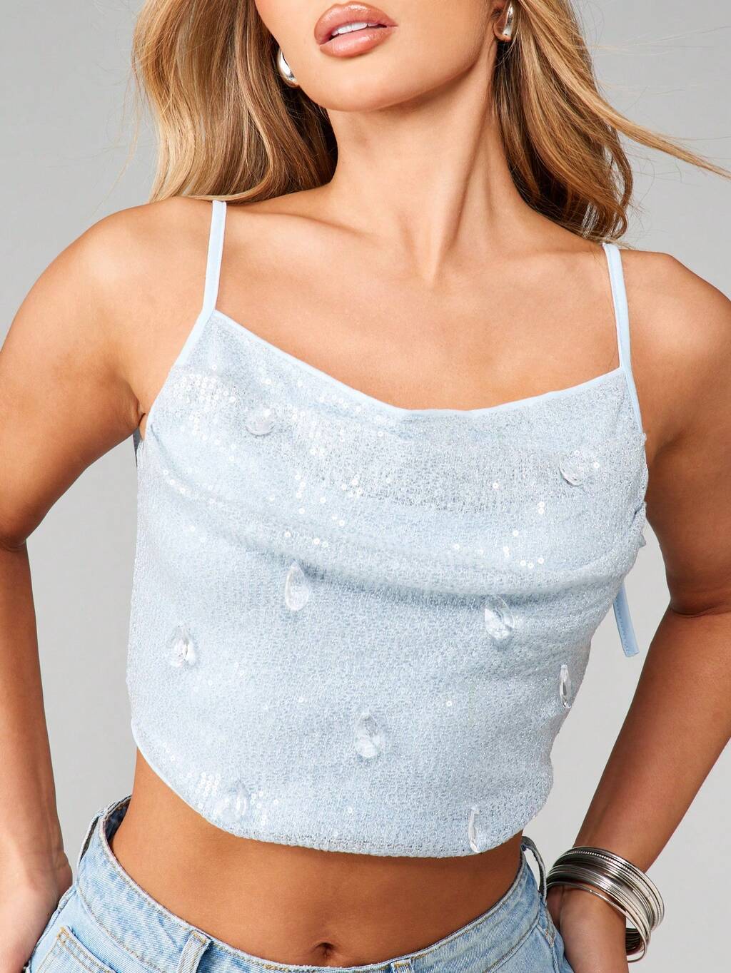 MISSGUIDED Camisole à col bénitier et paillettes avec liens latéraux