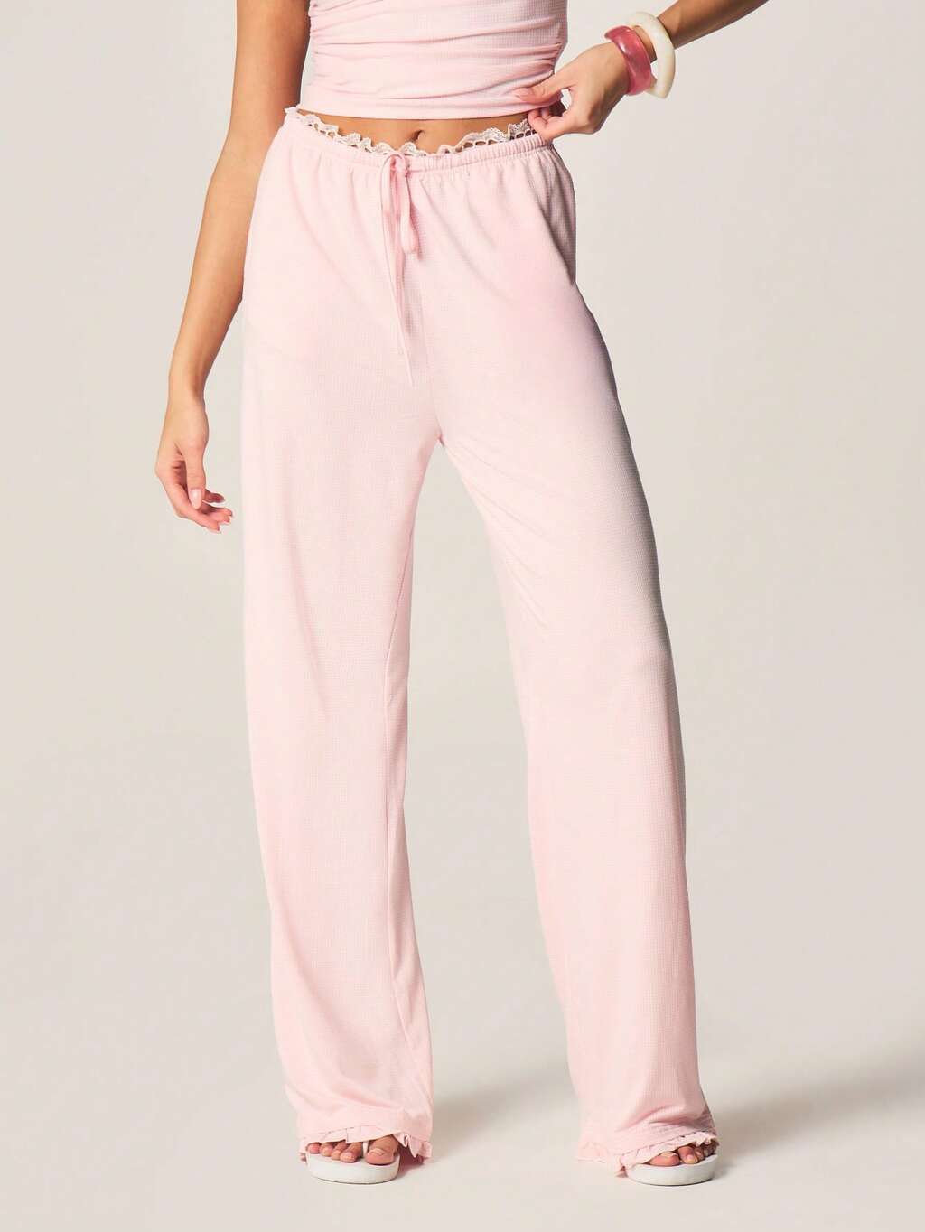 MISSGUIDED Pantalon Palazzo à jambes larges en crochet avec cordon de serrage à la taille