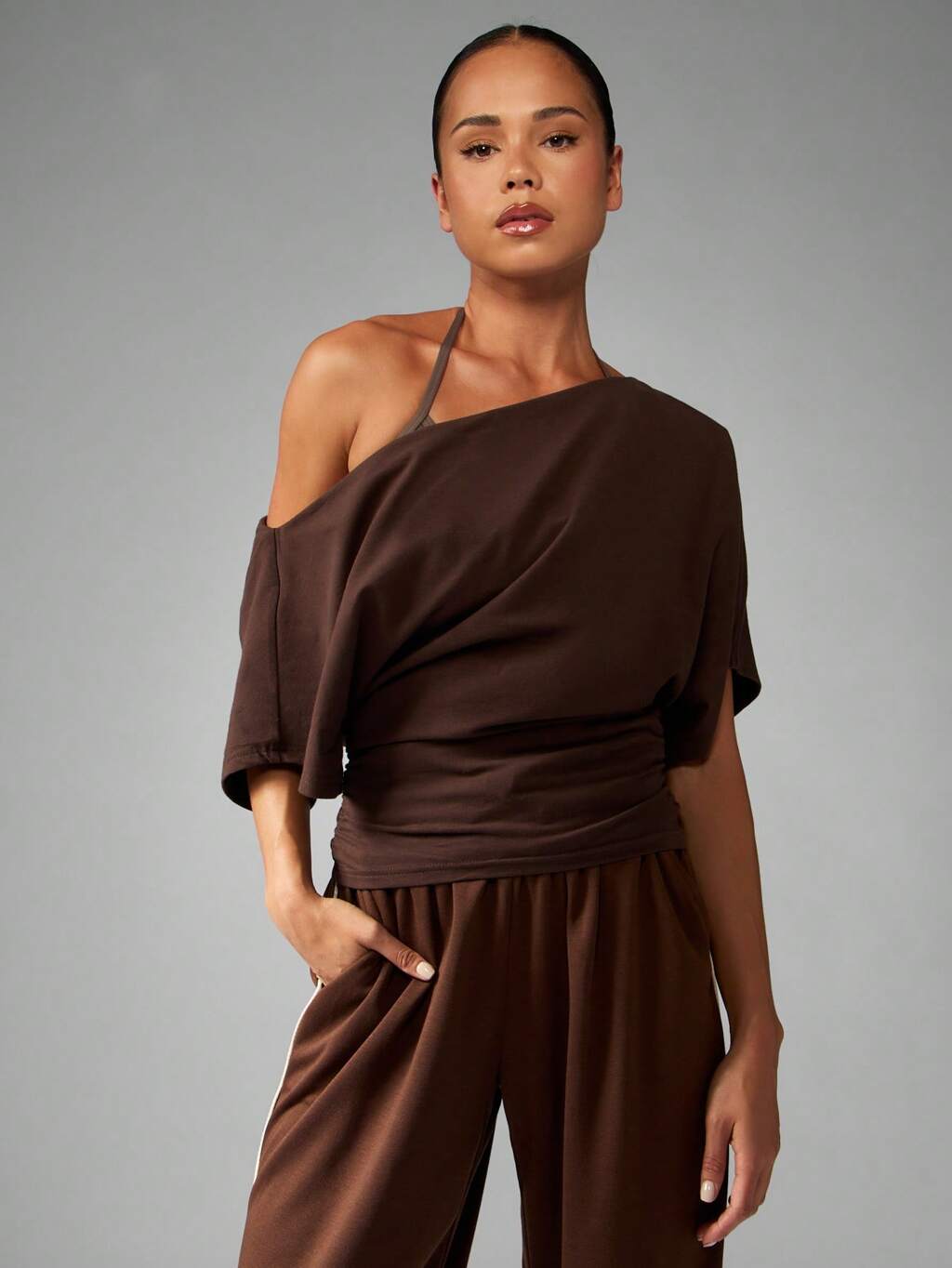 MISSGUIDED Top asymétrique à une épaule avec taille froncée