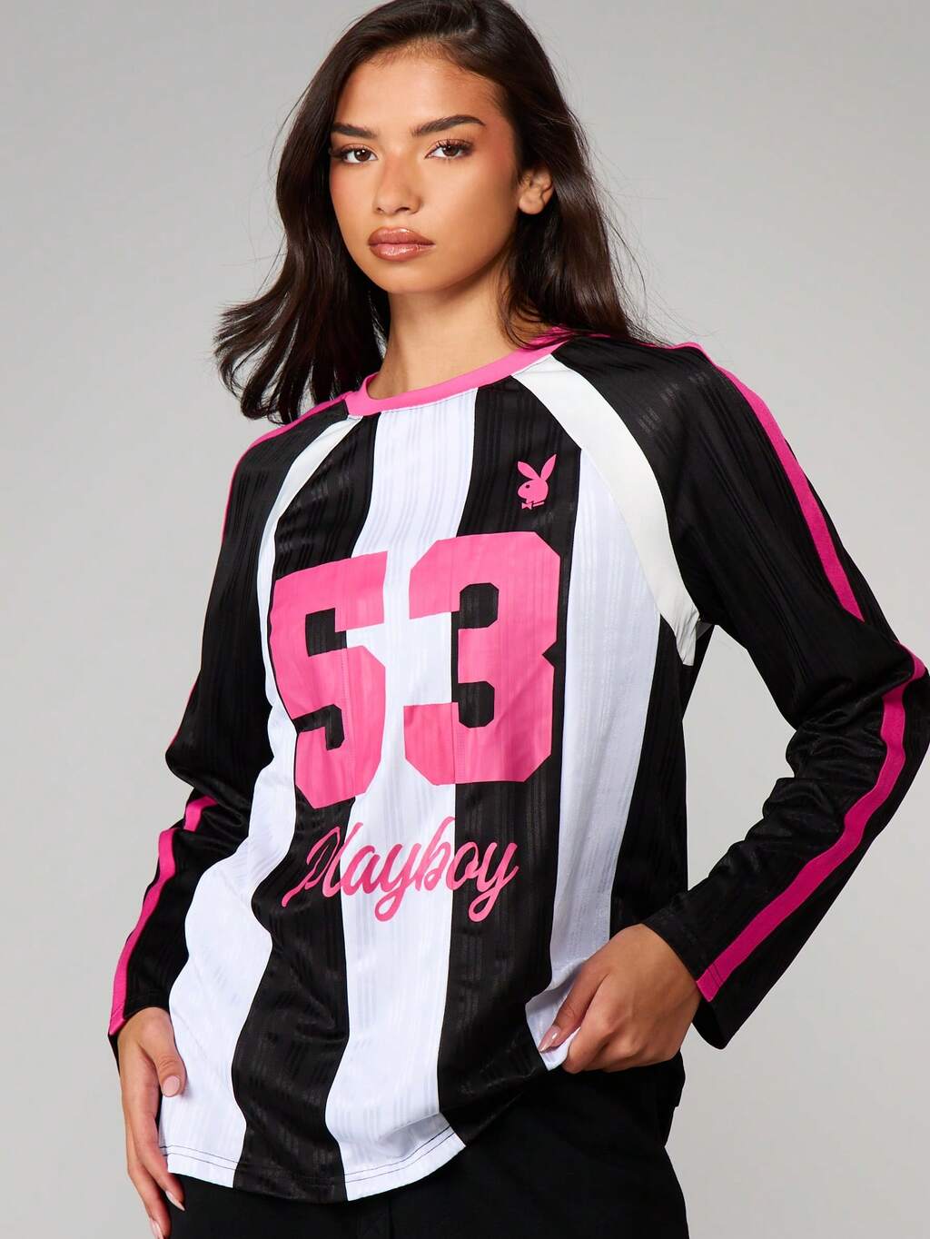 Missguided x Playboy Maillot de rugby oversize à larges rayures et numéro