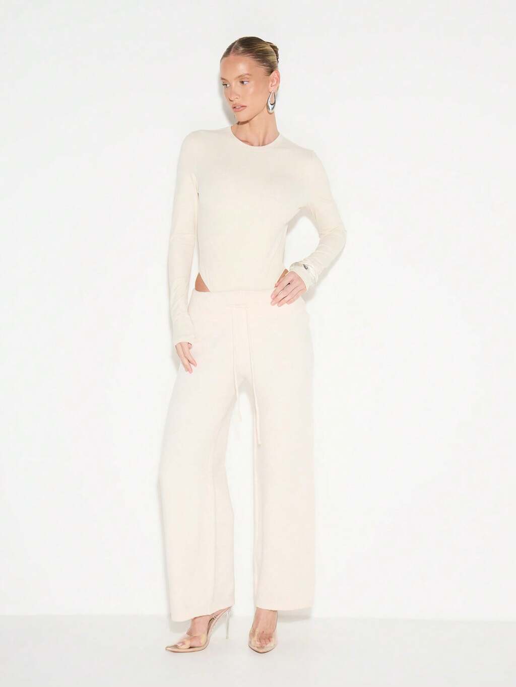 SUMWON WOMEN Pantalon de jogging tricoté à jambes larges avec cordon de serrage à la taille. Pantalon de détente confortable.