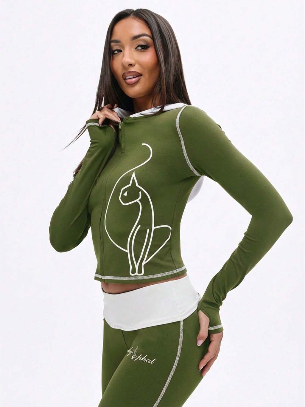 BABYPHAT Sweat à capuche zippé avec surpiqûres contrastées et imprimé de ligne art pour un superposage casual