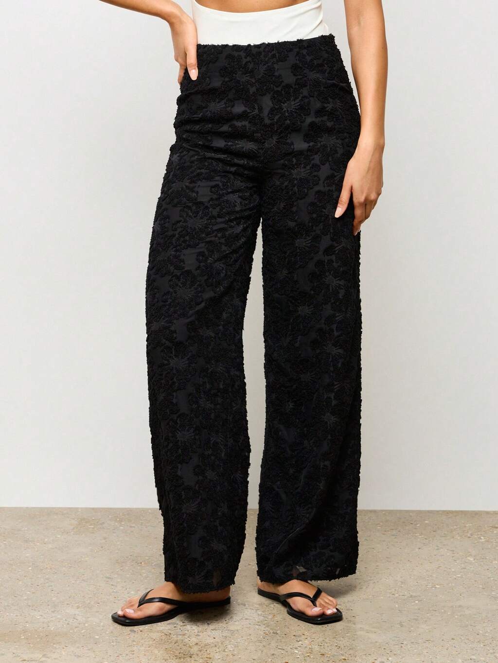 AiiRZ Pantalon ample de style Palazzo avec texture florale luxueuse. Pantalon en velours brûlé pour soirées, fêtes, occasions spéciales, tenues de détente. Bas pour l'automne et l'hiver