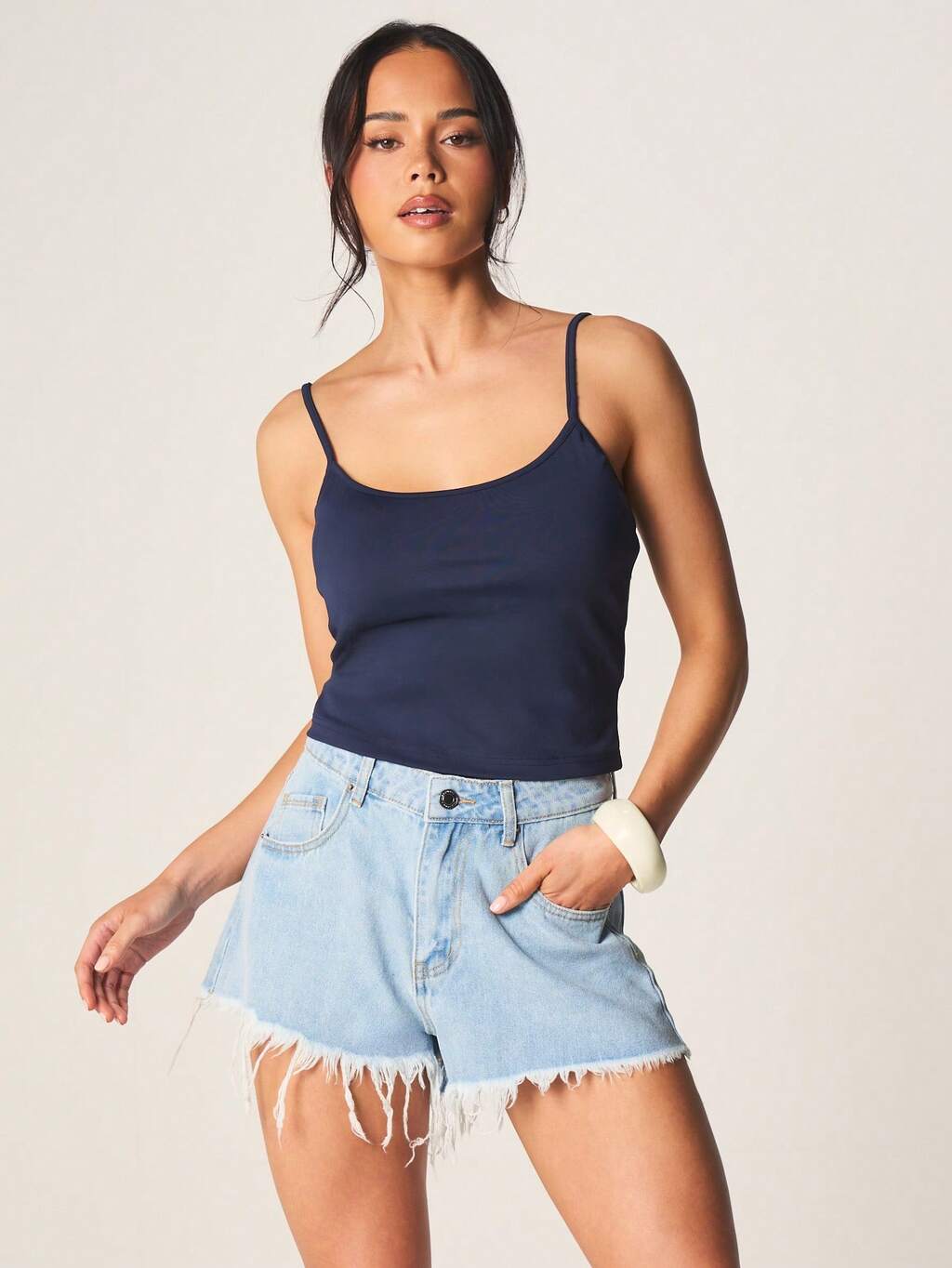 MISSGUIDED Short en jean mini à ourlet effiloché
