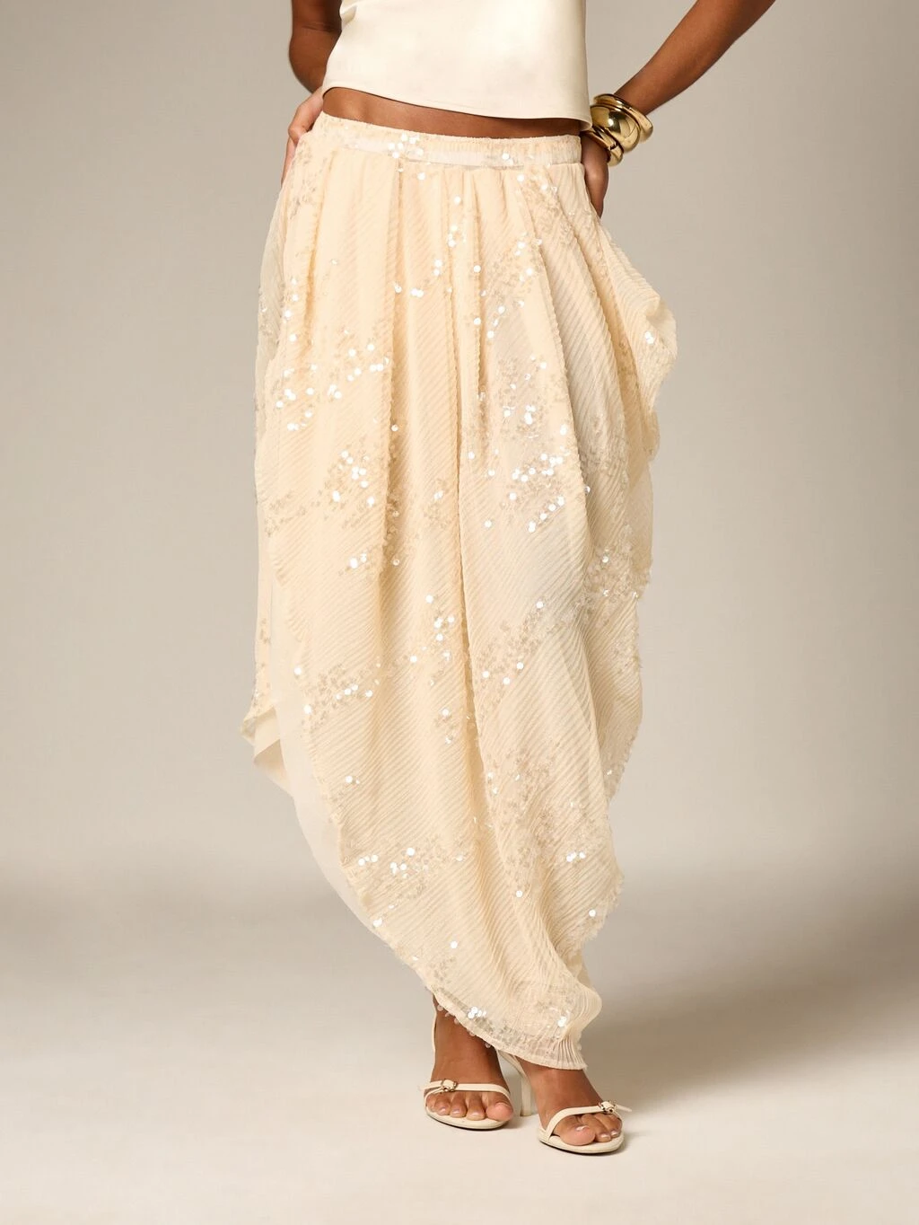 AiiRZ Jupe mi-longue drapée asymétrique avec ornements de paillettes, taille élastique et détail d'ourlet irrégulier, pour soirée, événements spéciaux