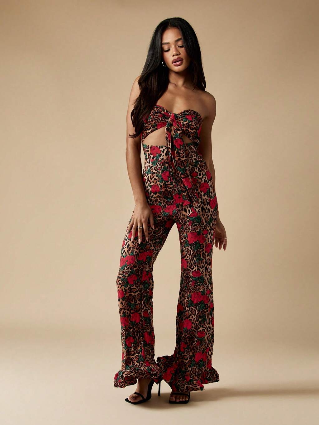 MISSGUIDED Combinaison évasée sans bretelles à imprimé léopard floral