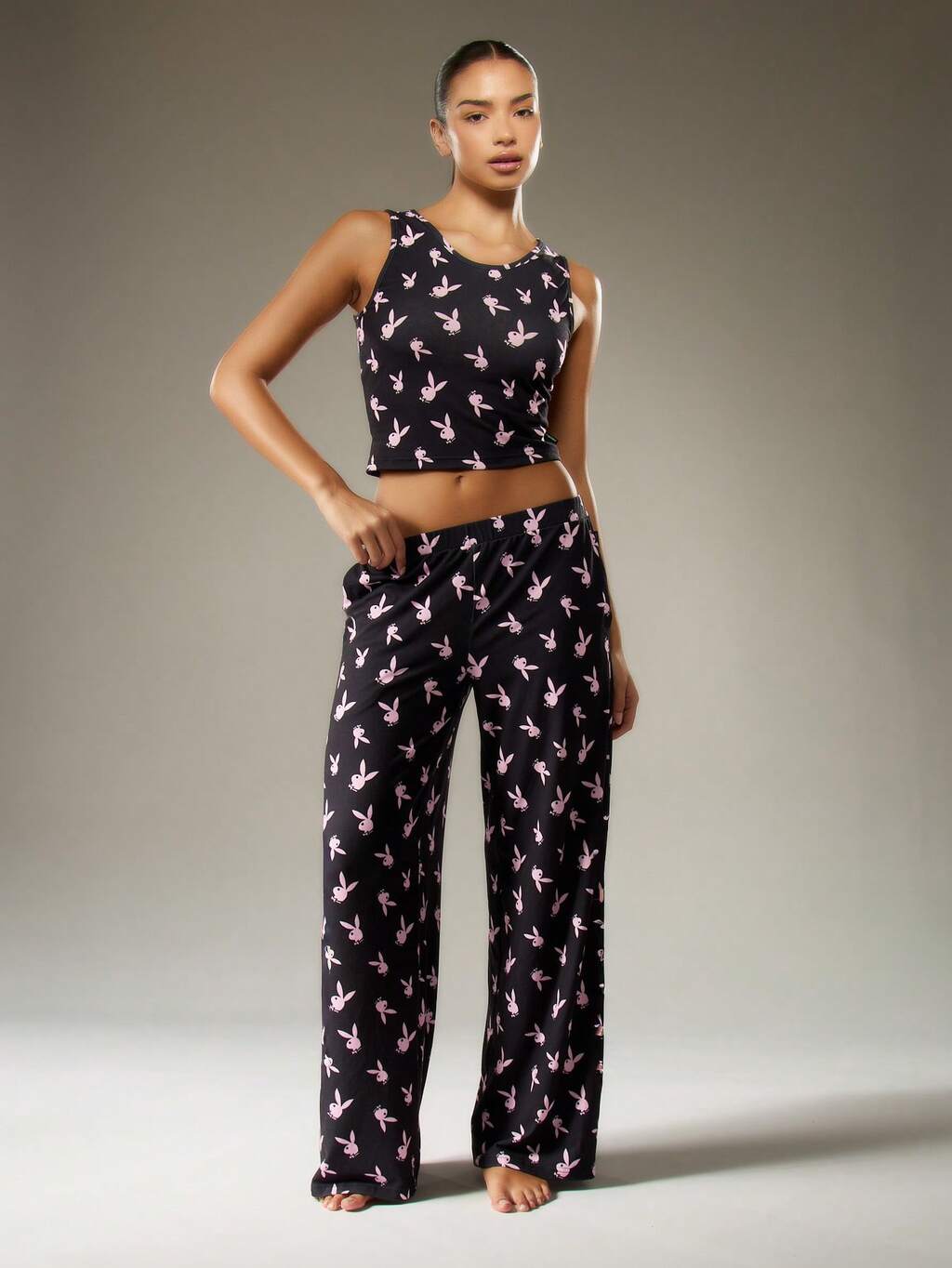 Missguided x Playboy Haut sans manches et pantalon large à imprimé lapin