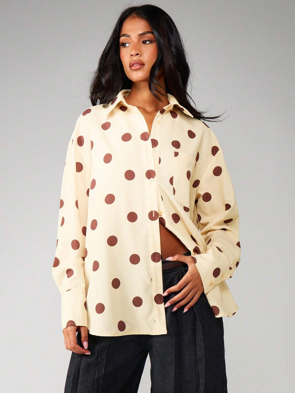 MISSGUIDED Chemisier boutonné surdimensionné à pois