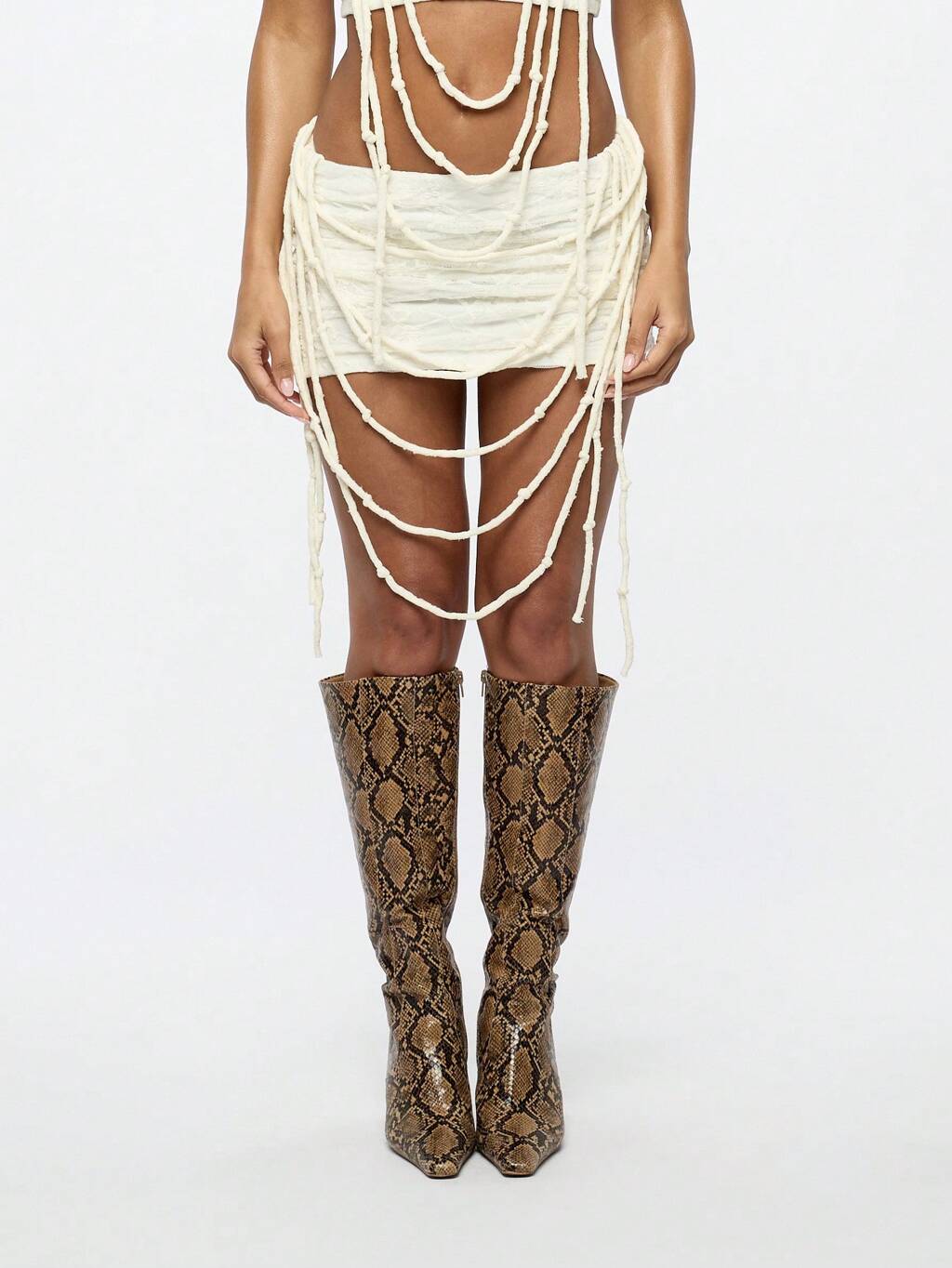 SUMWON WOMEN Mini-jupe déchirée prête pour le festival avec détails à franges, design à découpes, style bohème. Tenue de soirée pour fête et club. Bord effiloché, mode d'été