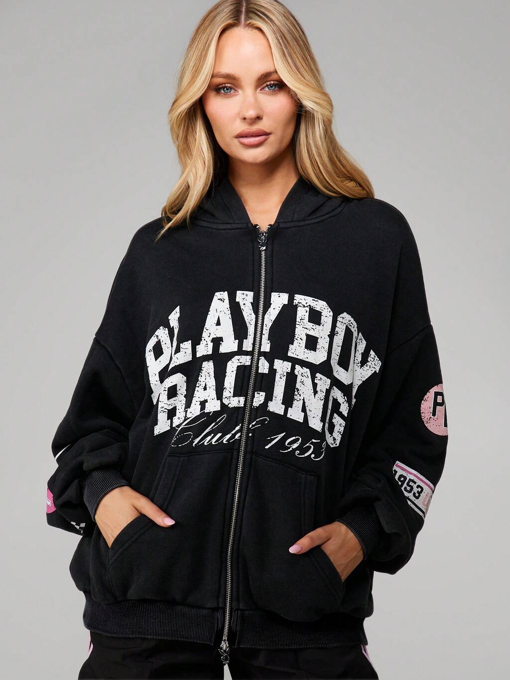 Missguided x Playboy Sweat à capuche oversize zippé avec motifs