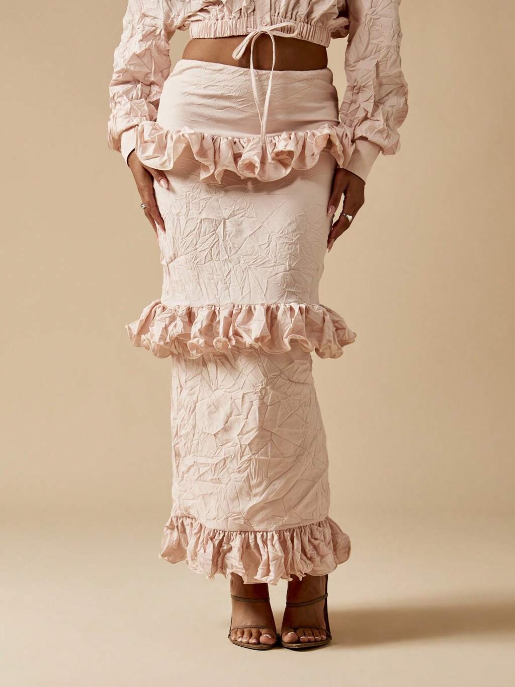 MISSGUIDED Gonna lunga in tessuto stropicciato con volant in stile vittoriano, elegante
