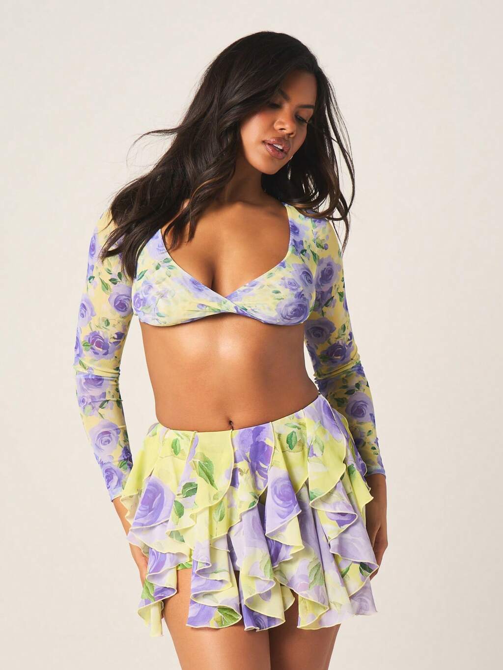 MISSGUIDED Minigonna con volant floreali e stampa di rose