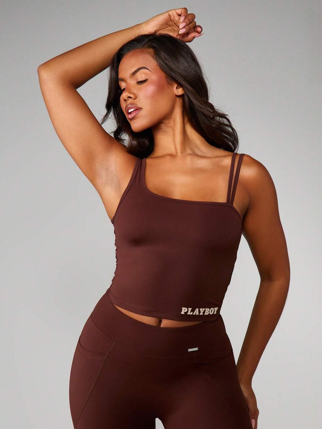 Missguided x Playboy Canotta aderente con doppia cinghia e finiture a contrasto