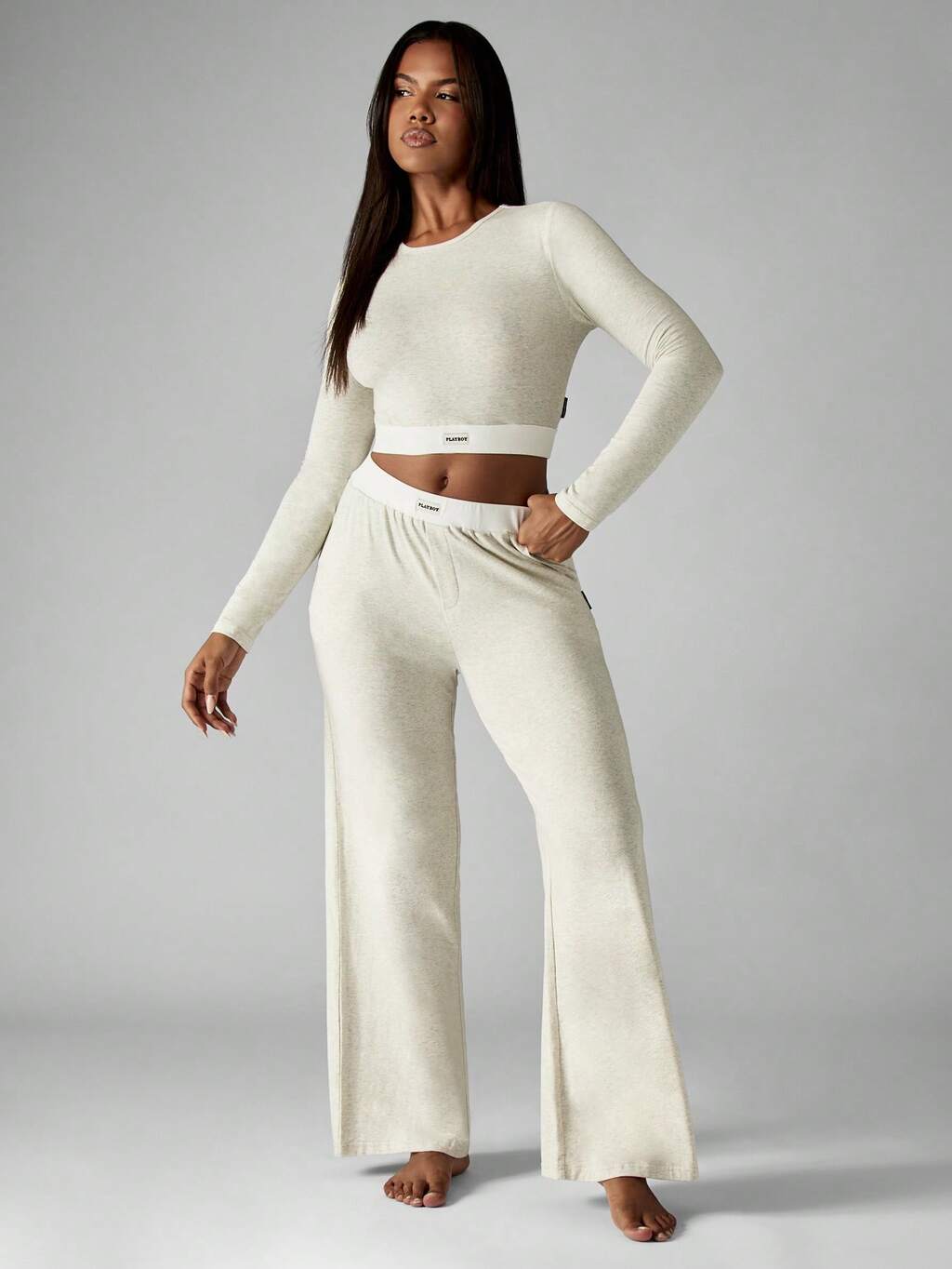 Missguided x Playboy Top corto a coste e pantaloni a gamba larga con dettaglio logo