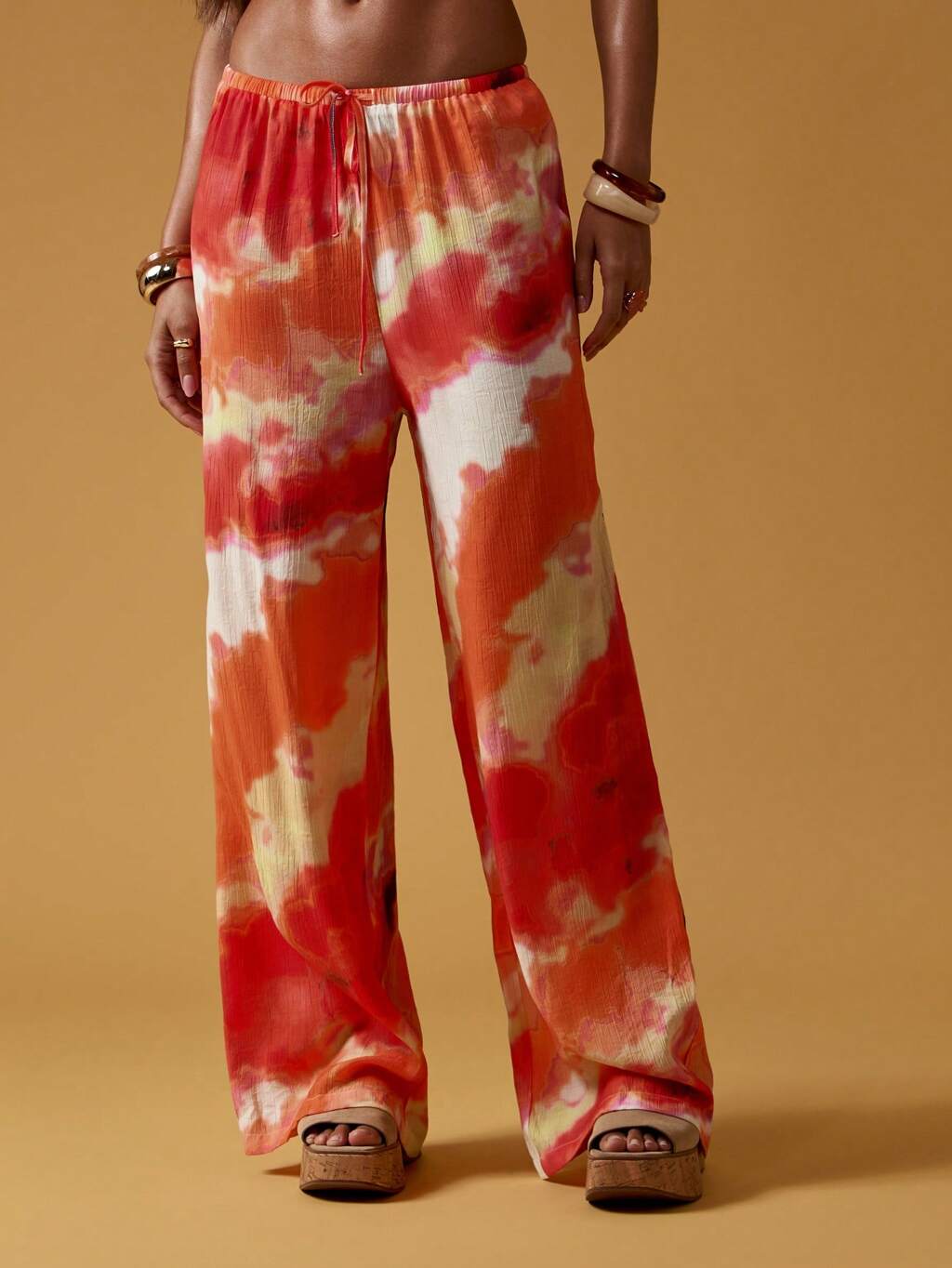 MISSGUIDED Pantaloni palazzo larghi, tie-dye, fluidi, vestibilità comoda, stile boho