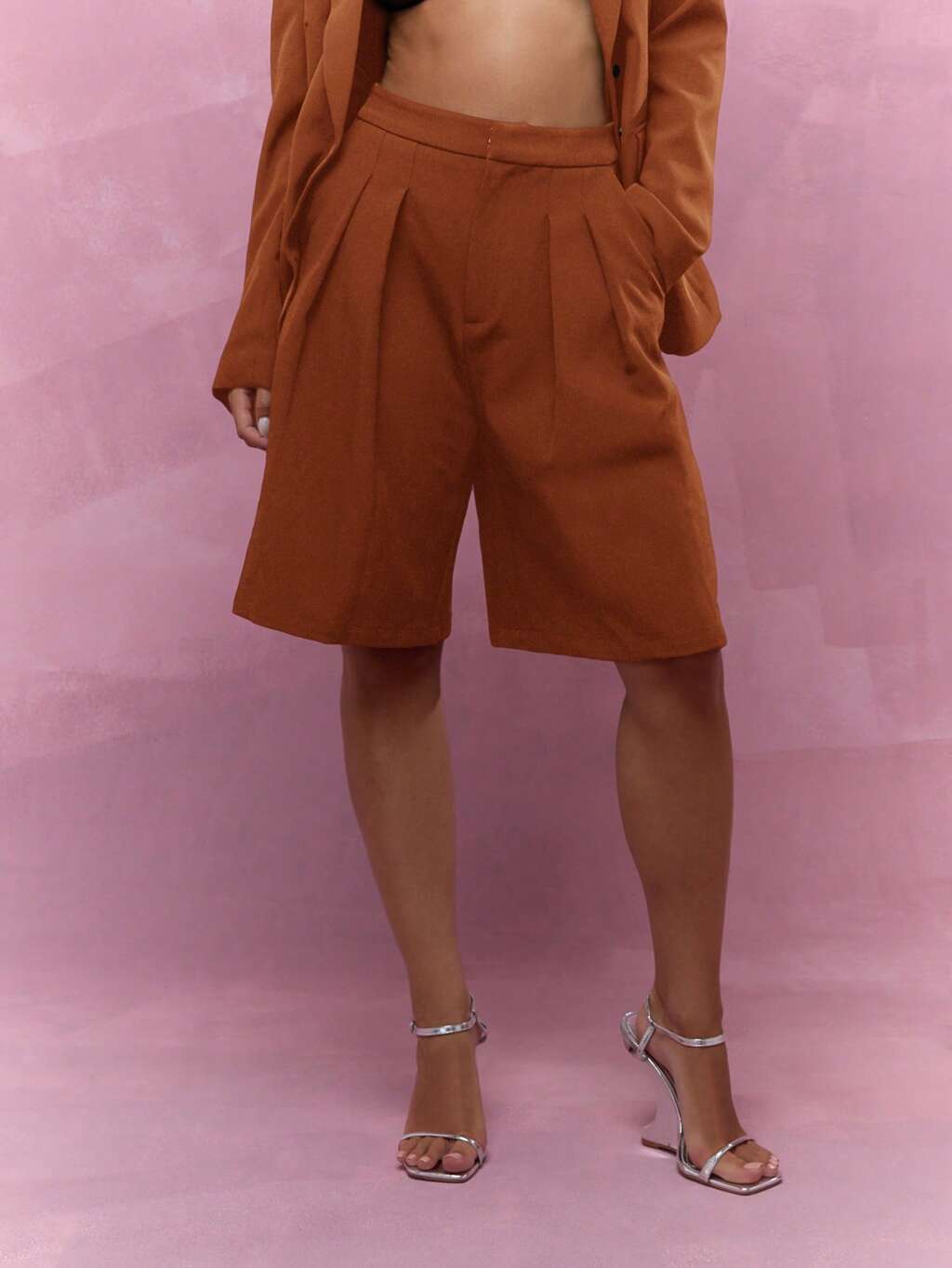 MISSGUIDED Bermuda corti a vita alta con pieghe su misura, lunghezza al ginocchio
