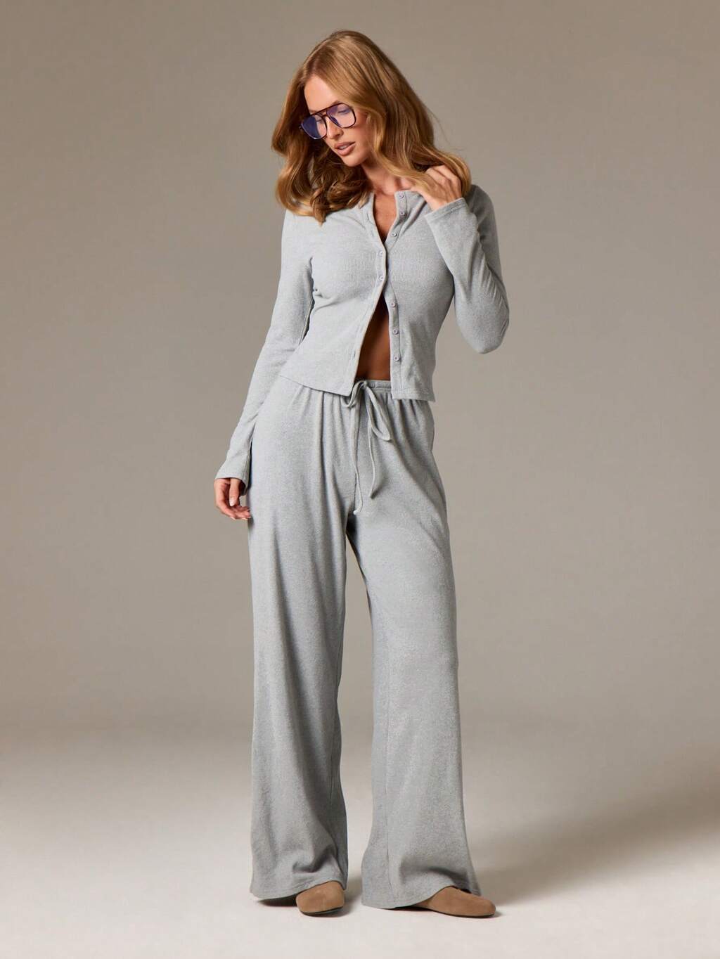 AiiRZ Set coordinato di lusso da donna in maglia a costine, con cardigan a maniche lunghe con bottoni e pantaloni palazzo a gamba ampia, per l'autunno e l'inverno, ideale per il relax