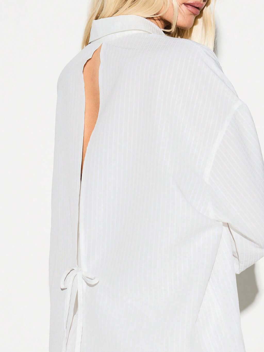 KIZN Camicia a maniche lunghe con bottoni e dettaglio di lacci sulla schiena e orlo anteriore con spacco