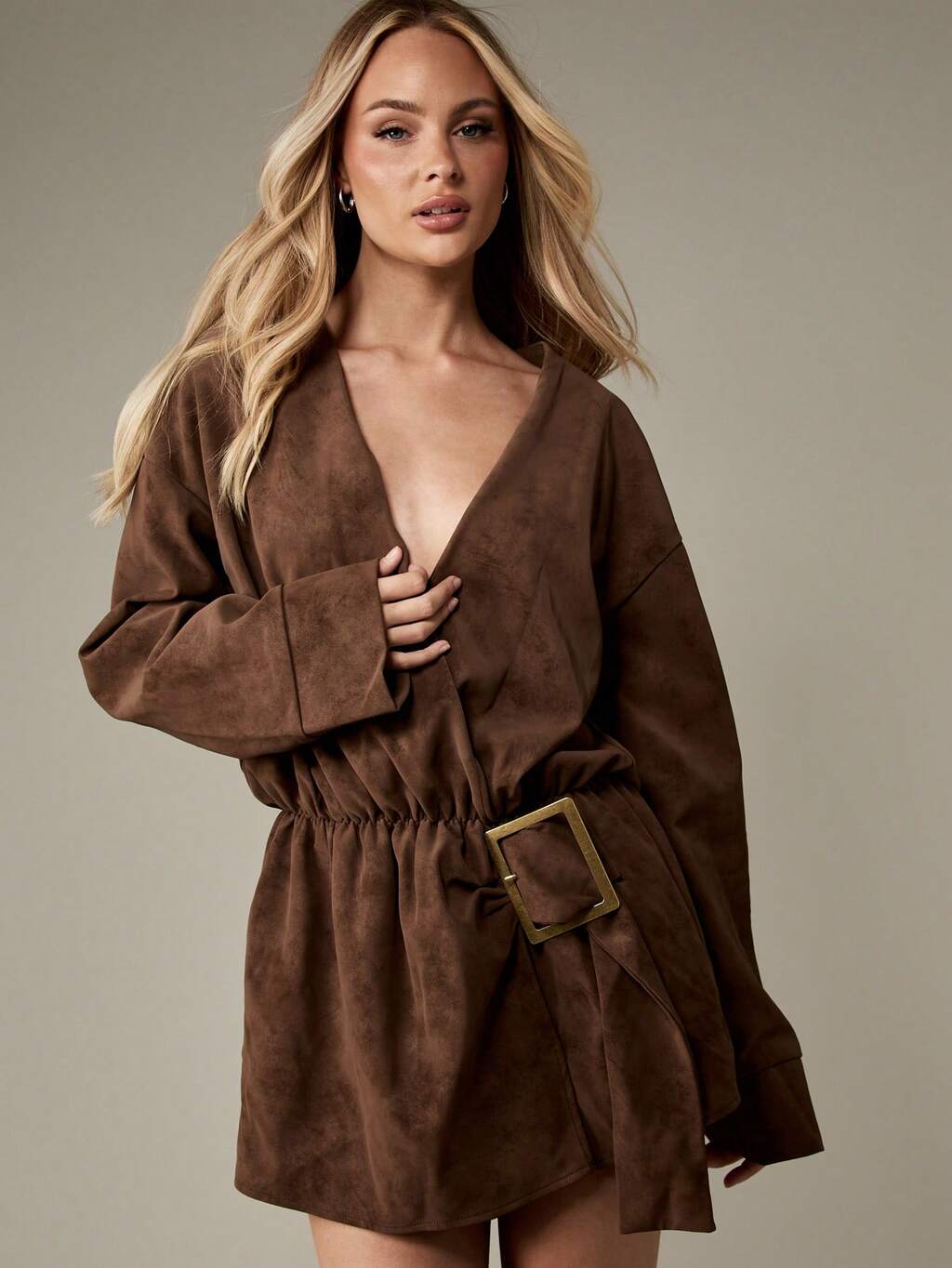 MISSGUIDED Mini abito in pelle scamosciata con cintura e fibbia