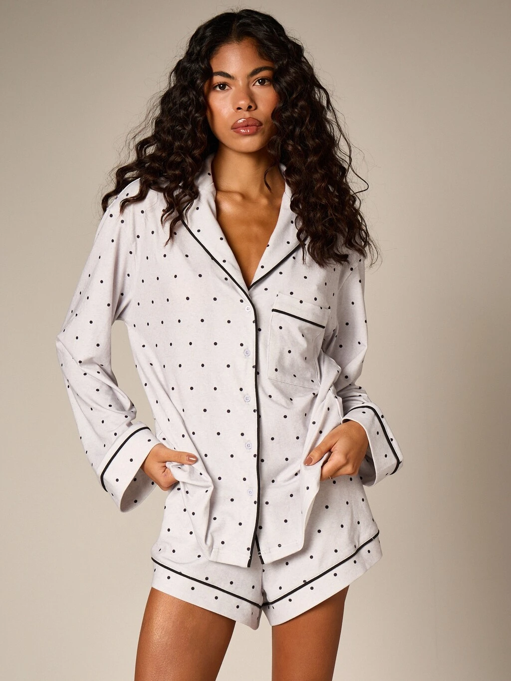 AiiRZ Set pigiama con camicia a bottoni a pois e pantaloncini abbinati con dettagli in contrasto con bordatura nera