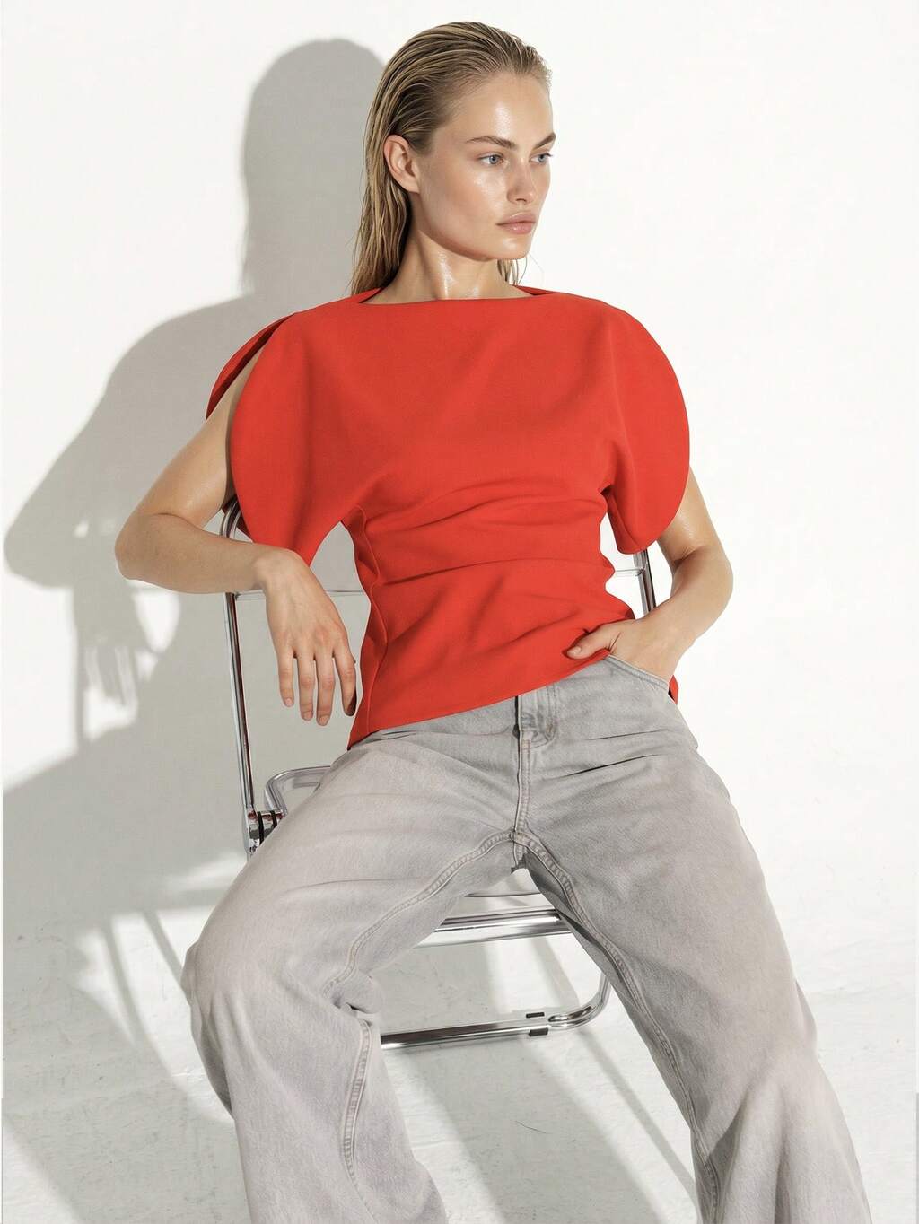 AiiRZ Top asimmetrico a maniche lunghe con drappeggi e dettagli arricciati per la moda autunno inverno
