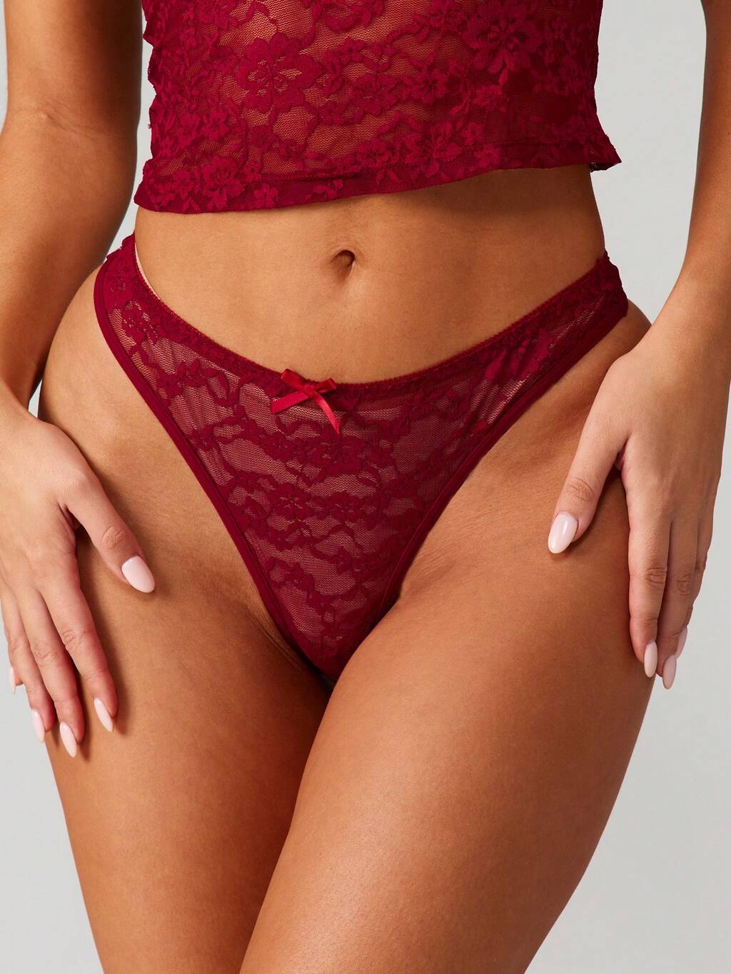 MISSGUIDED Perizoma in pizzo con fiocco in raso