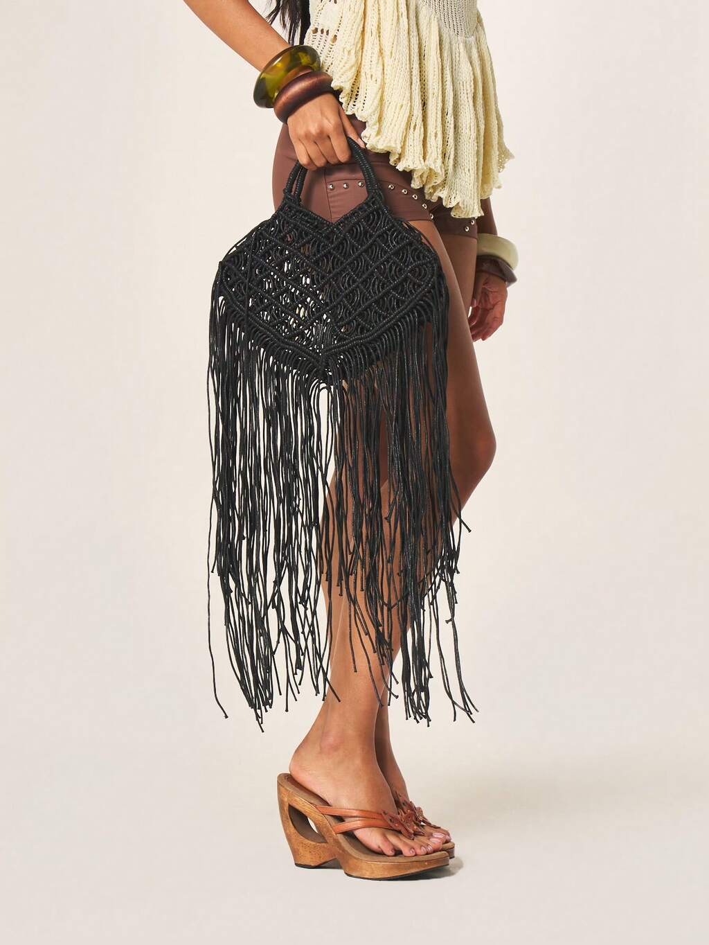 MISSGUIDED Borsa a tracolla in macramè con nappe a frange