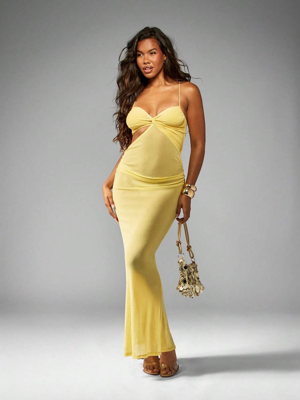 MISSGUIDED Abito lungo con scollo all'americana e ritagli arricciati