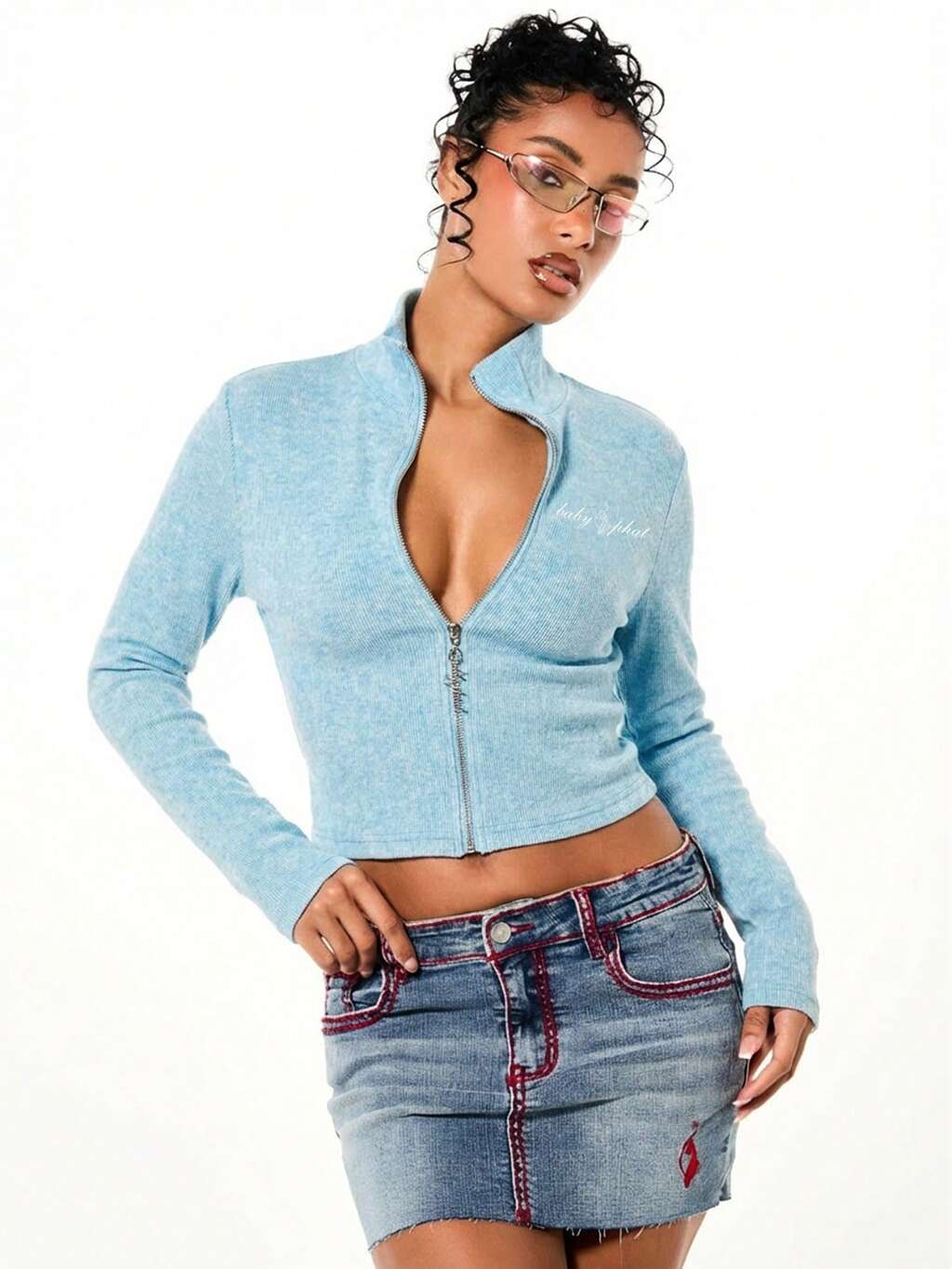 BABYPHAT Cardigan a collo alto con chiusura lampo, in maglia a costine, con maniche lunghe e vestibilità corta