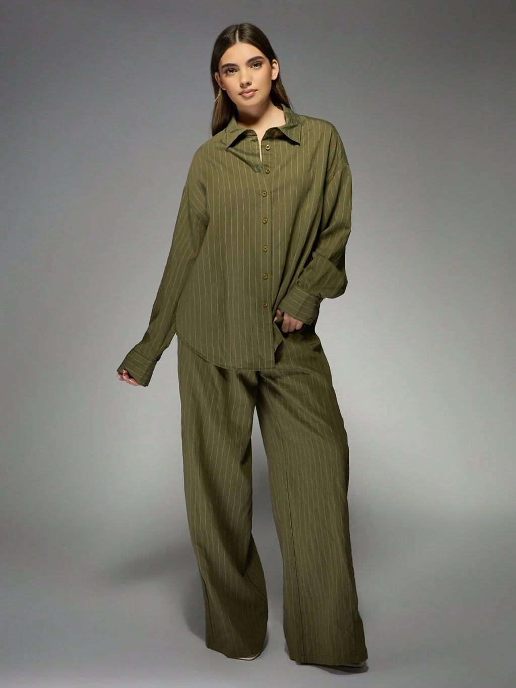 MISSGUIDED Completo due pezzi con camicia oversize a righe in lino e pantaloni a gamba larga