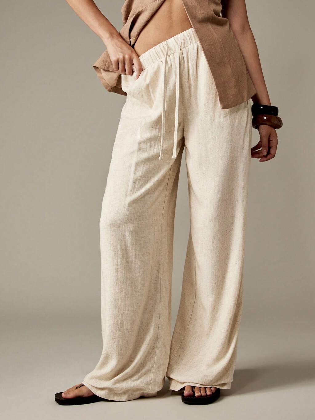 MISSGUIDED Pantaloni palazzo in lino a gamba larga con coulisse in vita