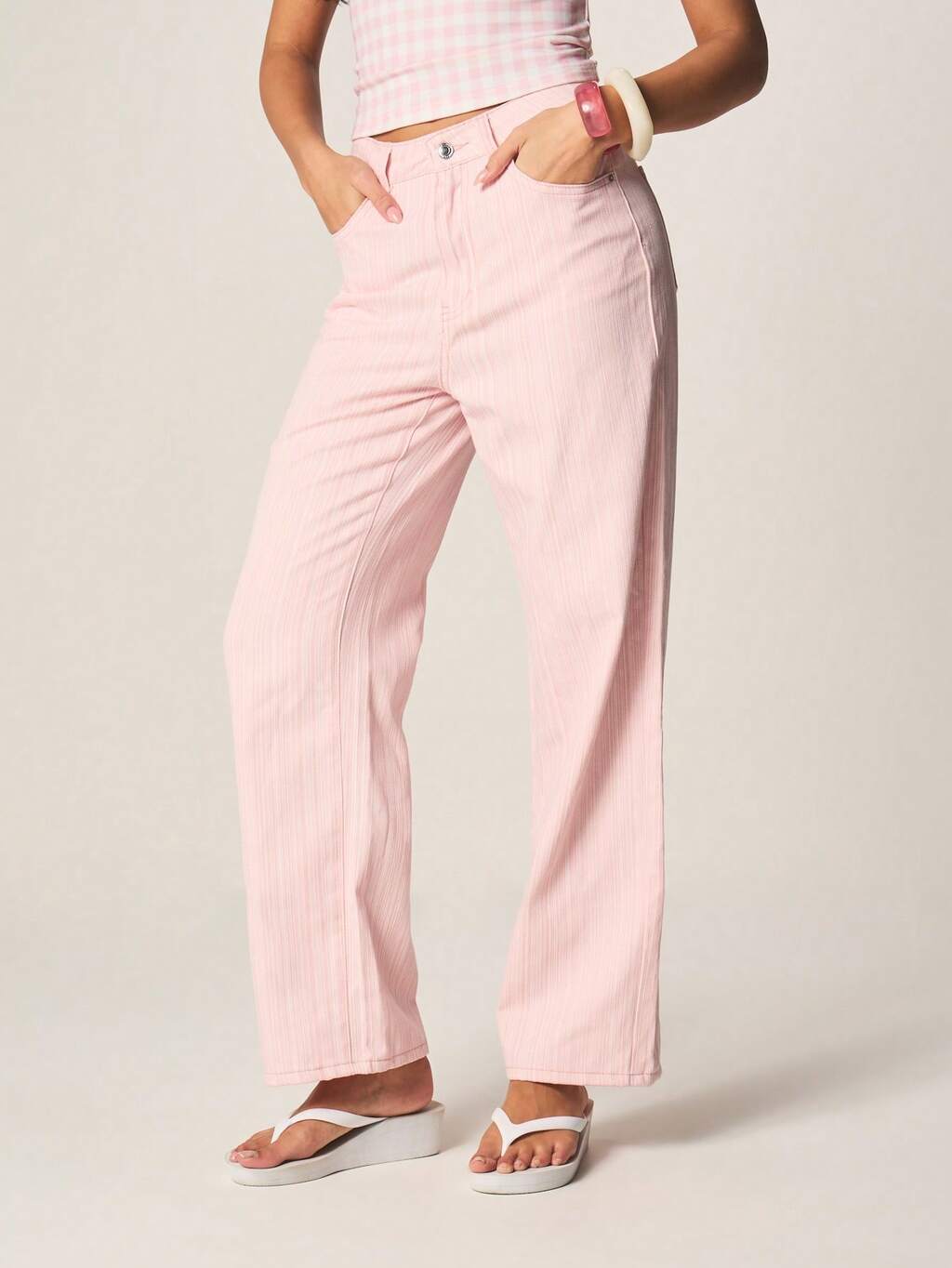 MISSGUIDED ミッドライズストレートレッグストライプデニムジーンズ
