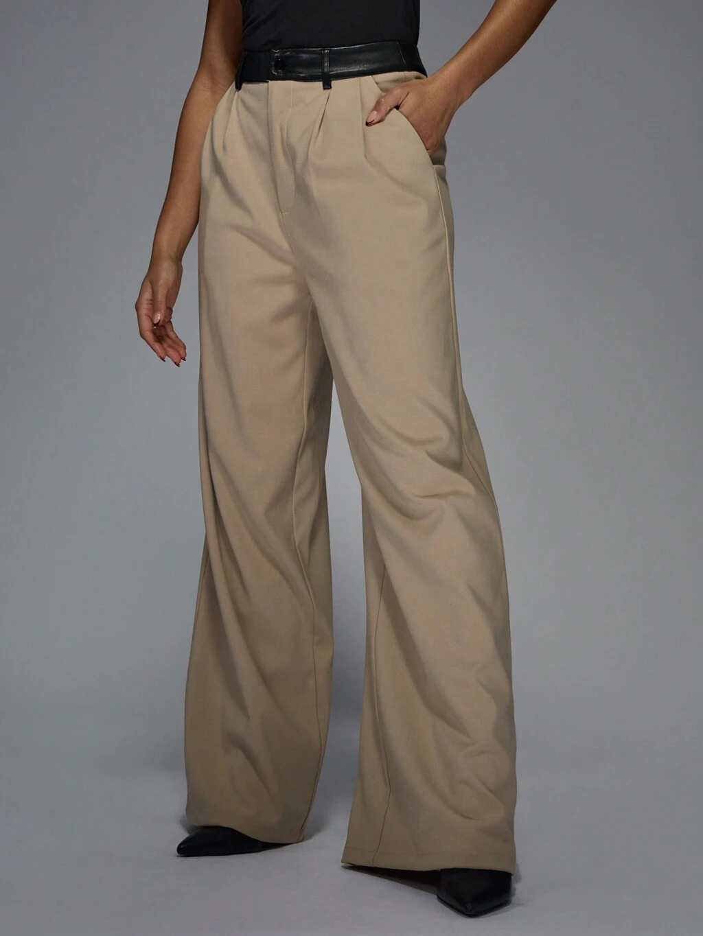 MISSGUIDED レザーウエストバンド付きワイドレッグパラッツォトラウザーズ
