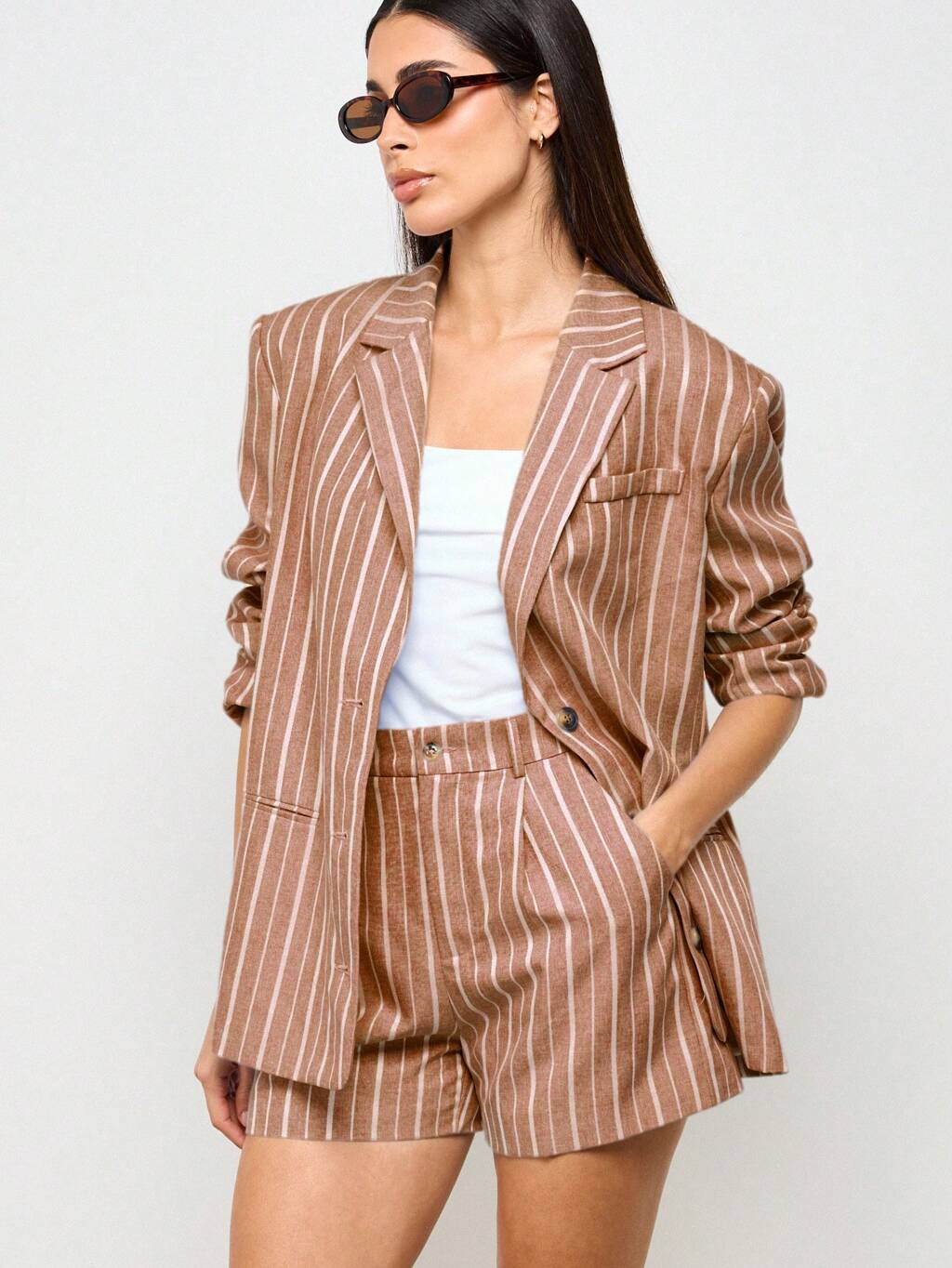 AiiRZ リネン調 ハイウエスト ストライプ柄 テーラードフィット リゾートウェア バケーション プレッピーショーツ