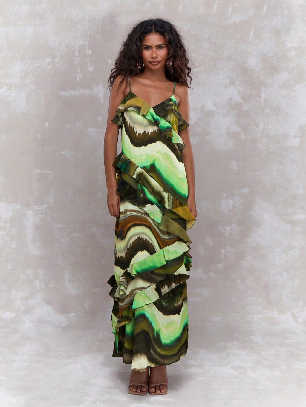 MISSGUIDED ボヘミアン オール オーバー プリント 非対称ラッフルディテール キャミ マキシドレス