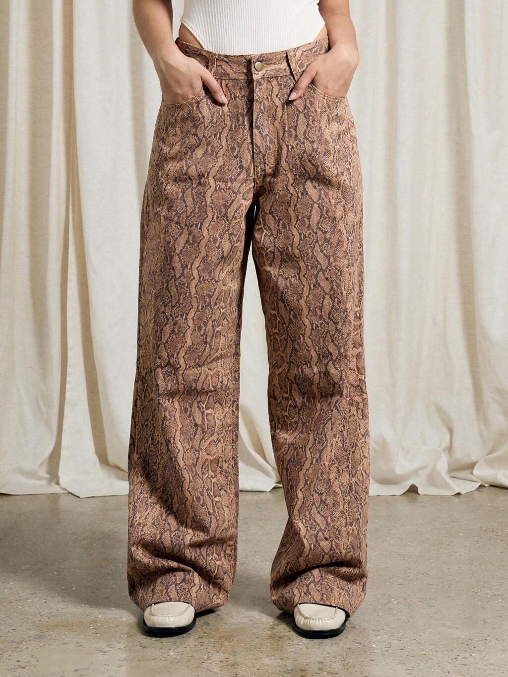 AiiRZ 蛇柄 ゆったりデザイン ローウエストジーンズ