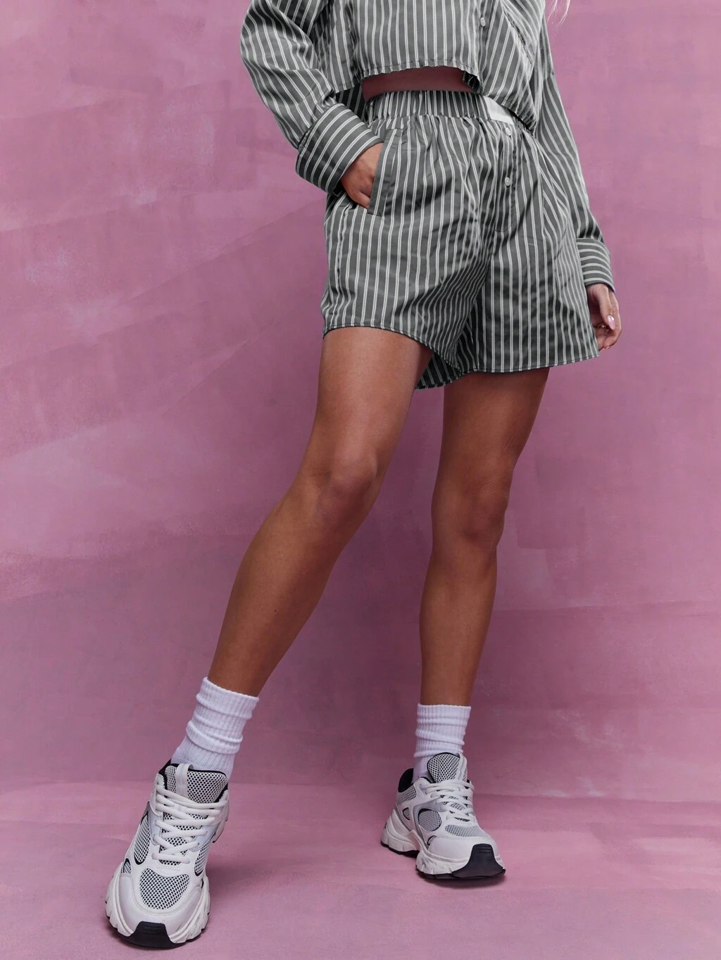 MISSGUIDED サイドポケット付きハイライズ縦縞ショートパンツ